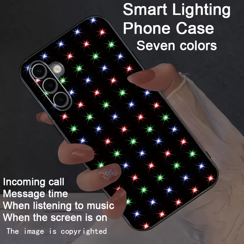We put an intelligent voice control chip inside phone case(Software inside PCBA). Then insert the Type-C connector inside the port of phone.So when calling, message received or music playing(Any sound), it will be shining and the speed of flashing will increase with the rhythm of sound.